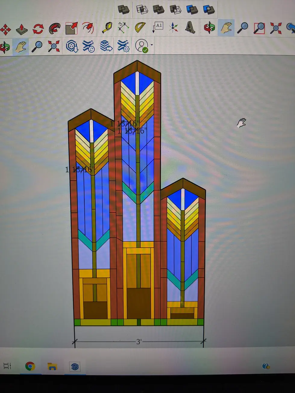 This set of three stained glass panels was designed as a unified installation for an outdoor garden space, with each panel standing on its own while contributing to a larger visual rhythm. Tall and narrow in form, the panels echo architectural lines and natural growth, drawing the eye upward through layered geometry and repeating motifs. Their staggered heights create a quiet sense of movement, like plants reaching toward light.